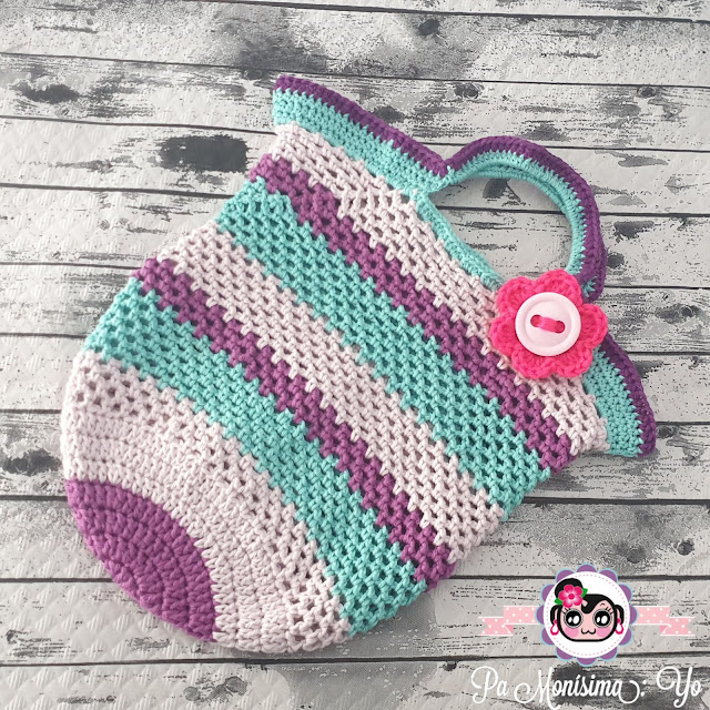 Por otra parte, le hice una bolsa para ir a comprar al mercado. Hecha por mis manitas a ganchillo con hebra de algodón 100% de varios colores. La base y las asas están reforzadas y la parte central está a punto de red.